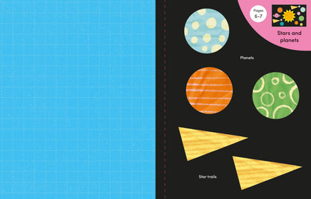 Children are invited to cut out shapes from the paper at the back of the book and glue them onto the illustrated scenes. The large shapes to cut around are perfect for little hands to follow and provide a fun way to practise scissor skills. From rockets and space shuttles to planets and friendly aliens, there are all sorts of exciting space pictures to create in this imaginative book. There are also lots of things to talk about on each page to improve vocabulary.
