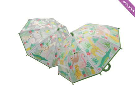 Floss and Rock magical colour changing umbrella is so much fun in the rain! Watch the details change colour in the rain and change back again when it's dry!.