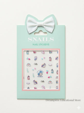A whimsical collection of unicorn characters, rainbows with clouds, shooting stars, and hearts. These stickers are designed with bright, cheerful colours and playful "cute" text accents.